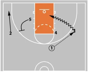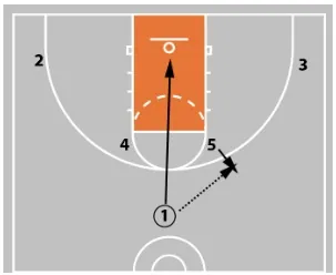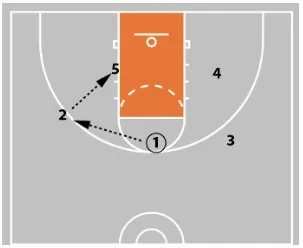 If 5 is not open for the lob, 1 can pass back to 2, who can look to shoot or throw the ball into 5 posting in the lane.