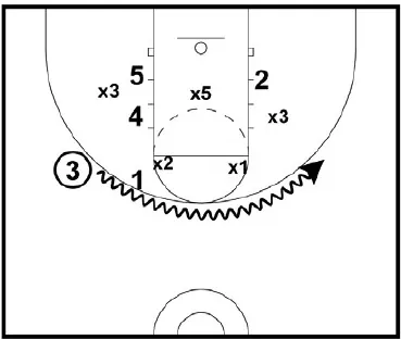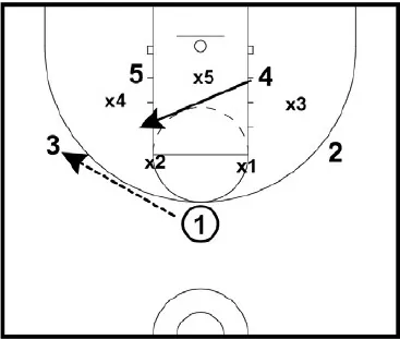 • 3 can take a quick look inside, then use the ball screen to reverse the ball to the opposite wing.