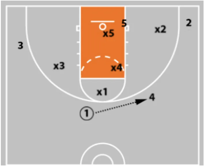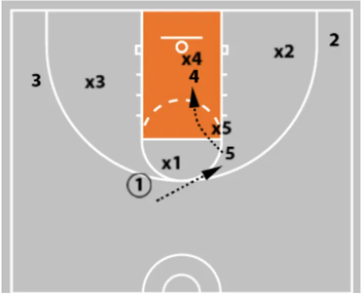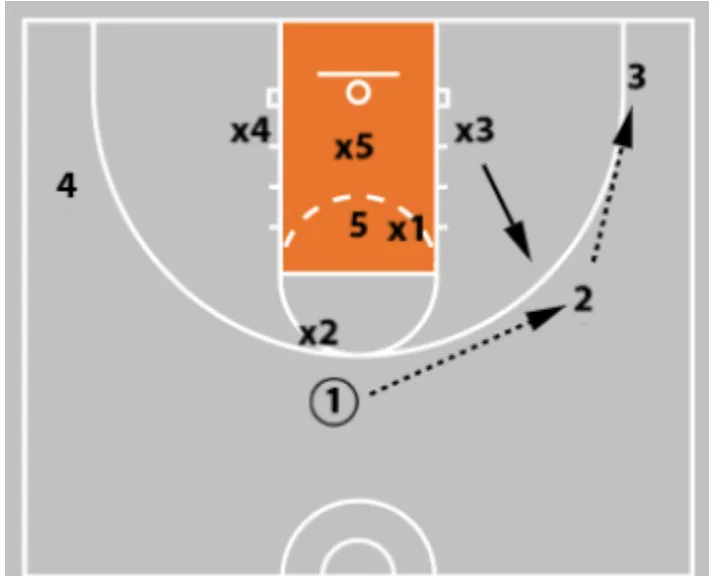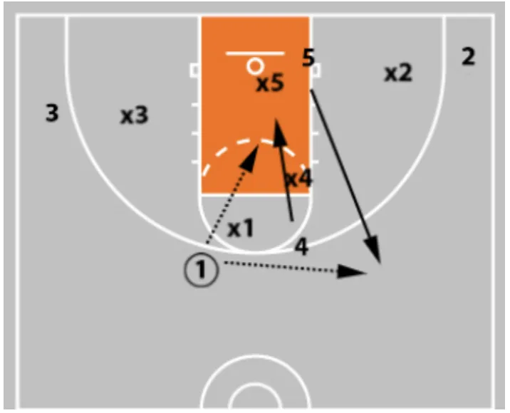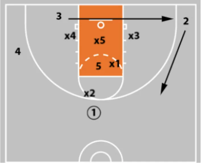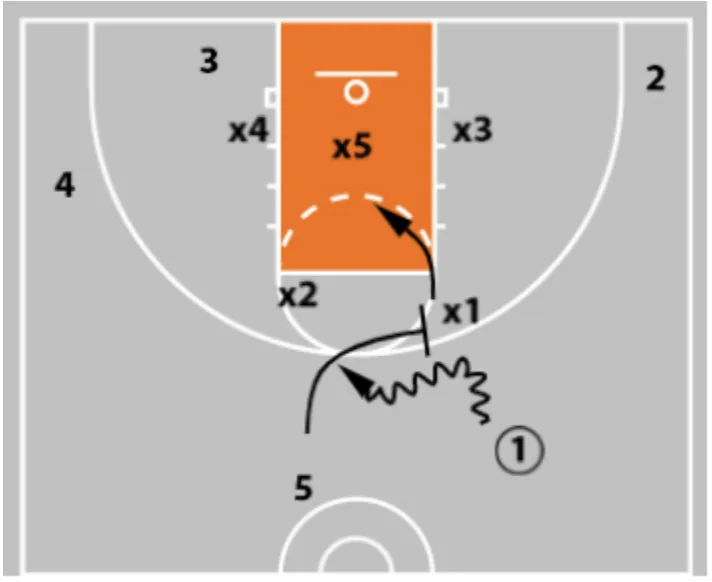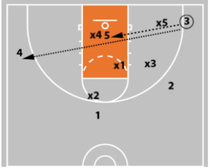 • If x5 flies out at the 3-man to take away the shot, you now have your post who is sealing the back side of the zone.