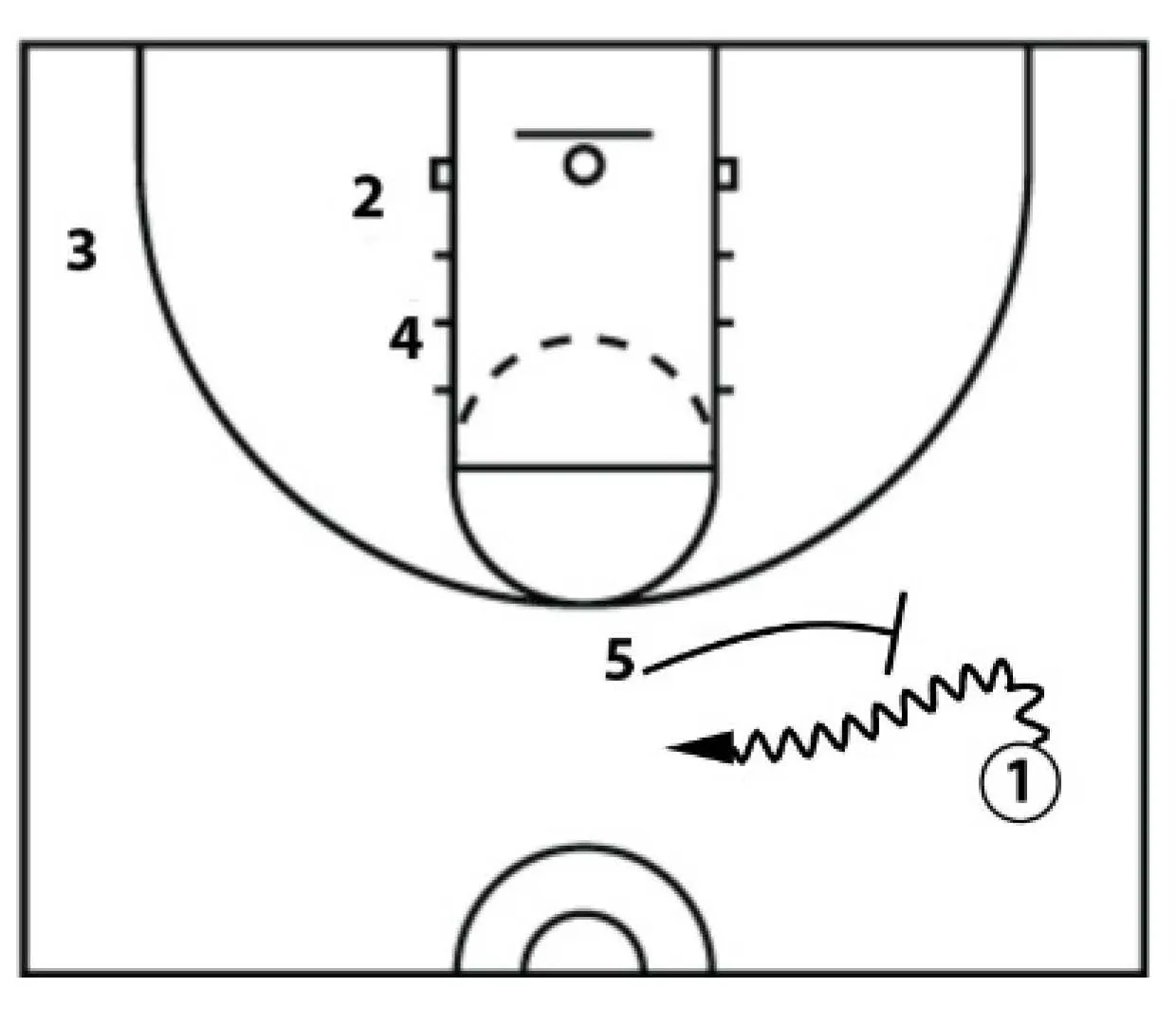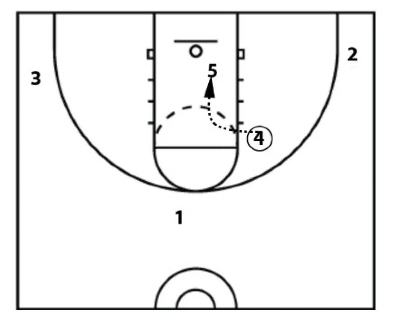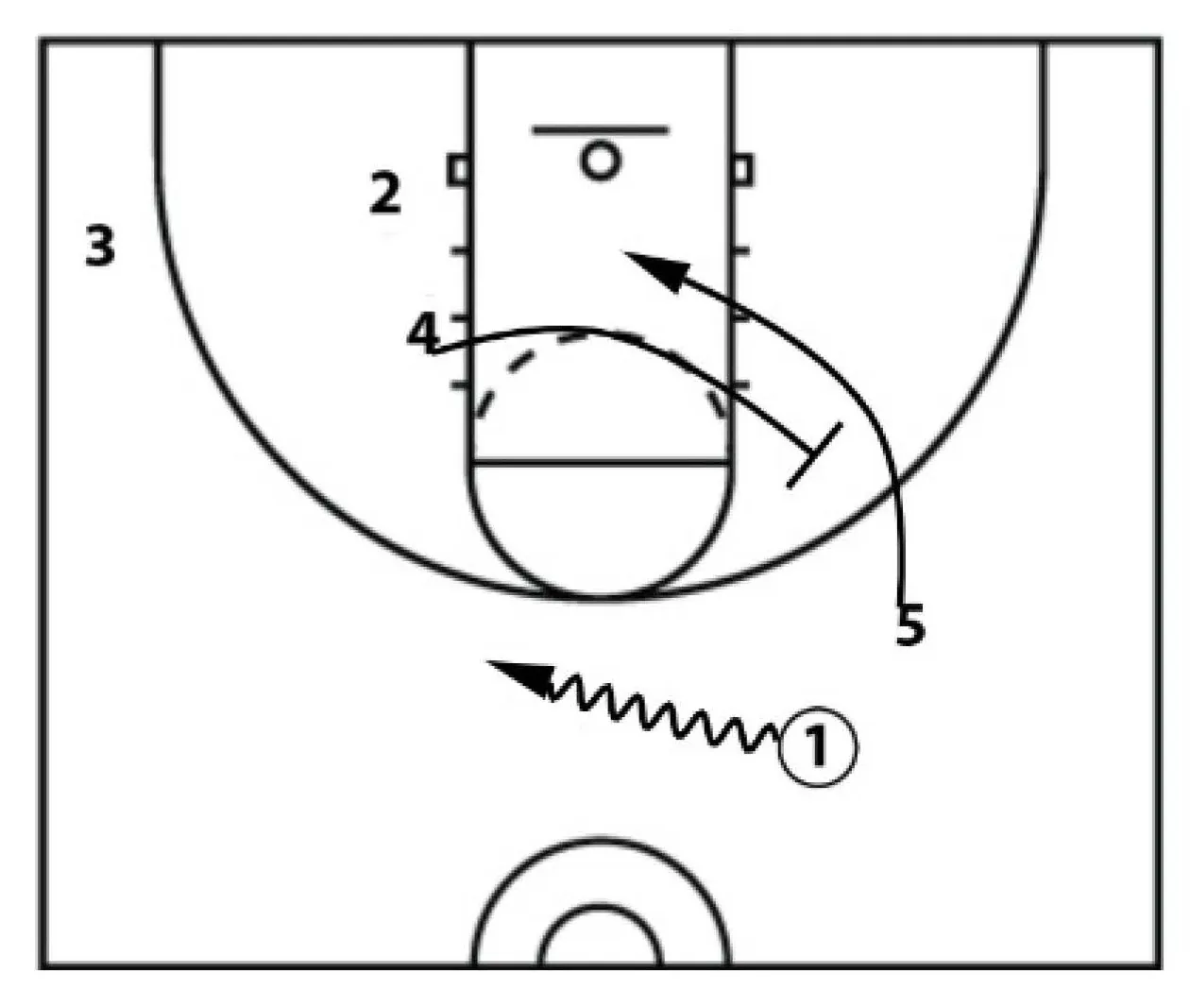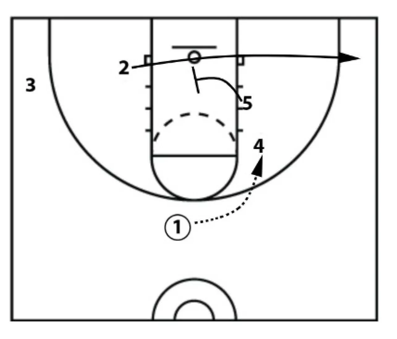 This action starts with a cleared out wing ball screen. Two players in the lane area on the opposite side and one guard in the opposite corner.