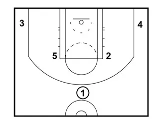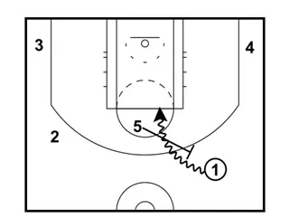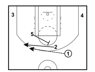 5 sets a back-screen for 2 once 1 goes to the right wing. 2 should reverse pivot upon receiving the pass.
