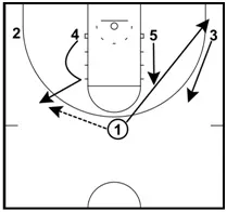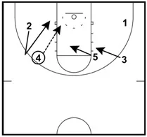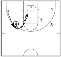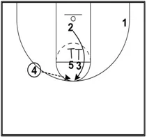 2 cuts to the top of the key looking for a three-point shot off of the pass from 4.