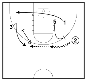 1 dribbles off of the screen and passes to 3 who is coming towards the ball.