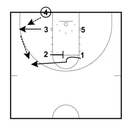 Your 3 man puts the play in motion by cutting to the three point line and receiving the ball.