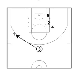 - Pass the ball to Player #3 at the top of the key for a three pointer