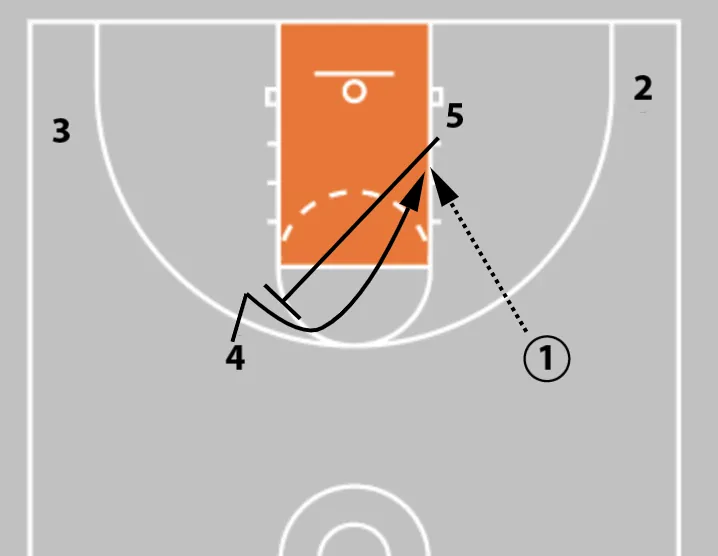 1. Player 5 sets a back screen for player 4.