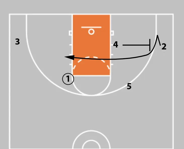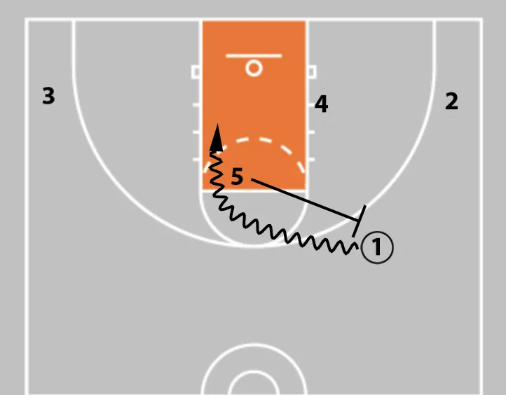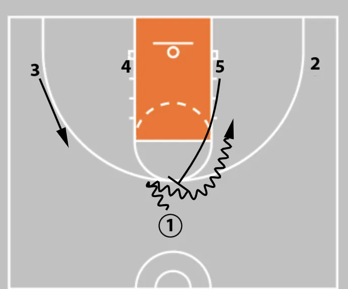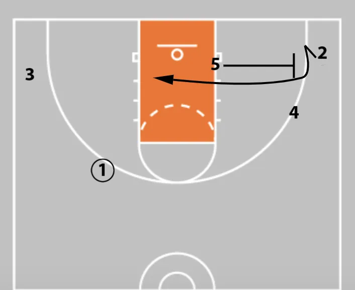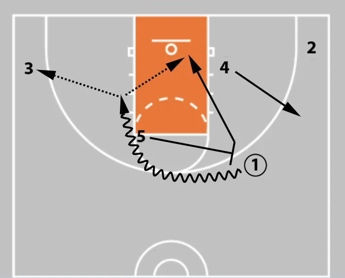 3. Player 5 cuts to set the ball screen.