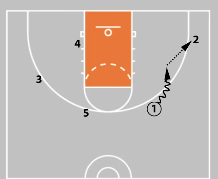 2. Player 1 dribbles to the left to set up the pick and roll.