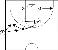 After passing back to 3, 1 follows his pass and sets a screen for 3.