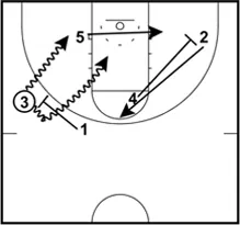 3 has the option of using the screen and cutting down the lane, or rejecting the screen and using the open space on the left side of the floor to attack the basket.
