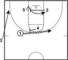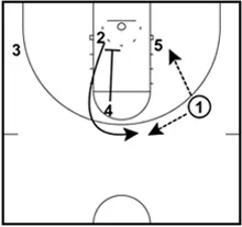 After setting a screen for 1, 4 down screens for 2 who cuts to the top of the key.