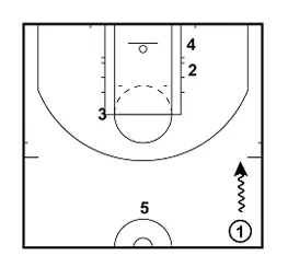 3, who needs to be a versatile scorer, starts on the left elbow where he can post-up if so desired.