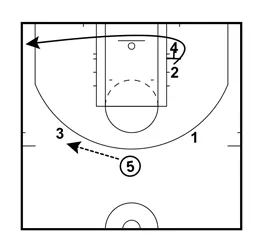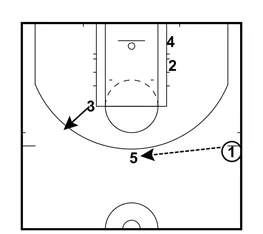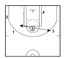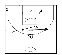 At the same time 5 receives the ball, 3 cuts up to the left wing.