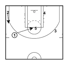 2, who needs to be able to knock down long range jumpers, while 4, who the play is run for, should be a good low post scorer with some range on his jumper. Both players start on the low right block