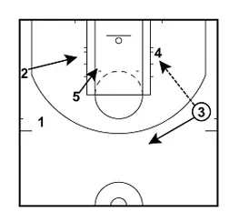 After passing the ball, 3 clears the area to allow 4 room to operate (isolation).
