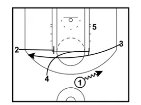 If the pass to 2 is not open, 1 should pass the ball to 3. The entire left side of the floor will be cleared out for 3 to attack.