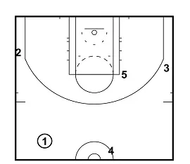 Player 1 is the point guard and he brings the ball down the left side of the court. They need to have excellent handles and be quick.
