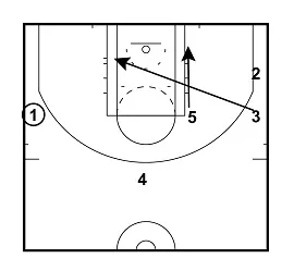 As soon as Player 2 gets to the right wing, Player 3 cuts to the left low block.