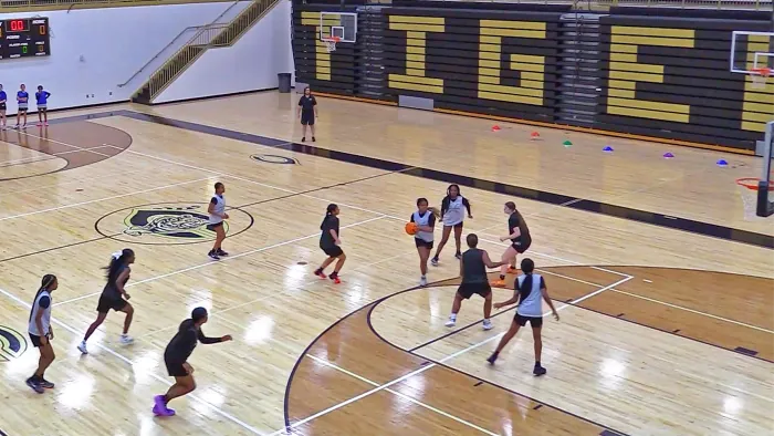- If the ball enters the high post or low post area, multiple players collapse to force the ball back to the perimeter.