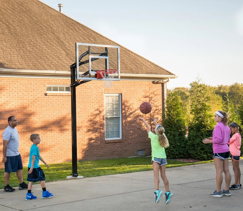 By giving your family a lifetime of court time, this hoop gives you a better return on your investment than difficult-to-move portable hoops.