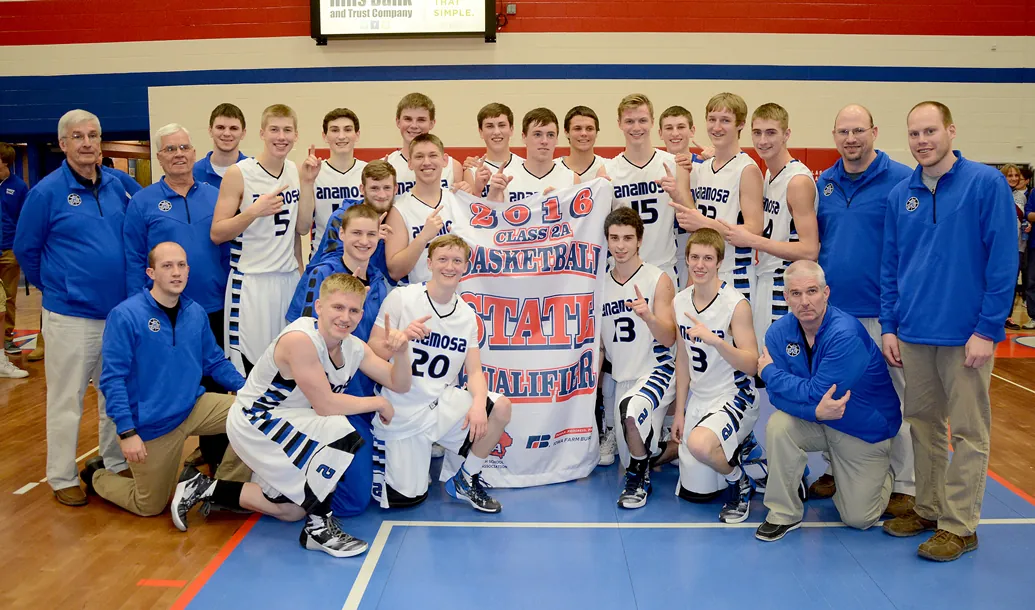Coach Kevin Barnes and the Anamosa high school 2015-16 basketball team. Coach Barnes is a big fan of the 2-3 zone defense. In the past, it has helped compete and win more games