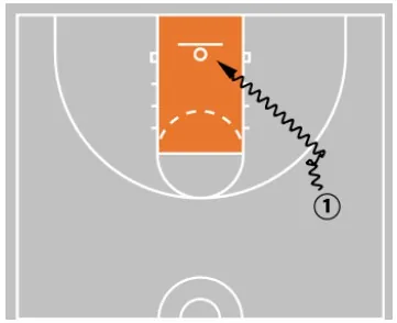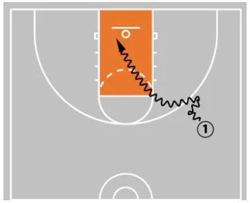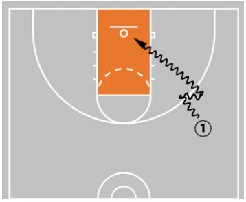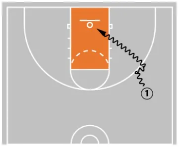 Start outside the three point line at one wing. Attack the basket to simulate you are going at the defender.