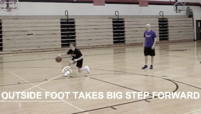 - Lean and lunge with a big step with the same foot as you are dribbling with