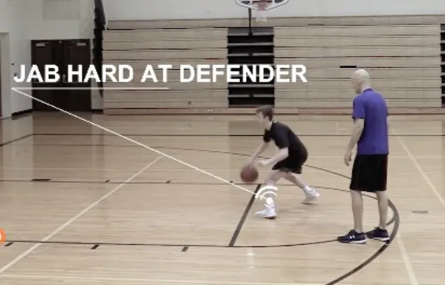 Second, your jab will be right at your defender. If able, jab directly between the defender's legs.